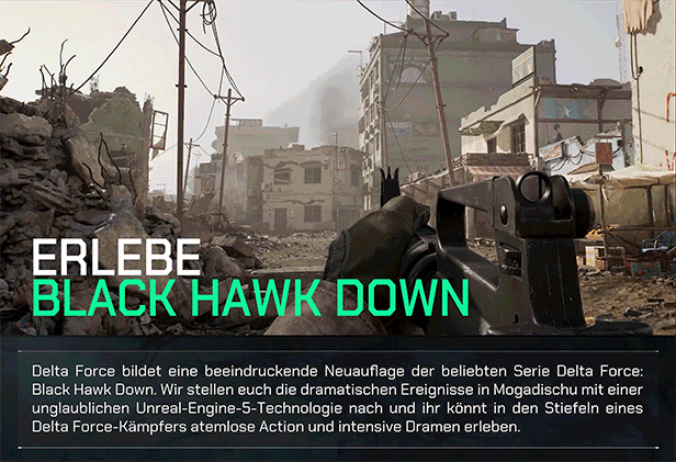 - Black Hawk Down: Schlüpfe in dieser Neuauflage der klassischen Kampagnenserie, die auf dem fesselnden Film von 2001 basiert, in die Rolle der legendären Kämpfer der Delta Force.