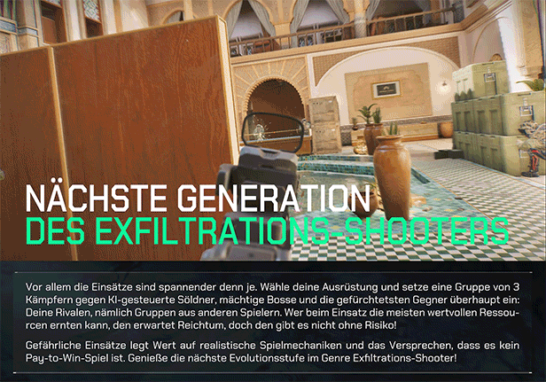 - Einsätze: Delta Force trifft auf die nächste Generation von Exfiltrations-Shootern, wenn du mit deiner Gruppe hinter die feindlichen Linien vorrückst, nach Wertgegenständen suchst, gegen feindliche Spieler kämpfst und exfiltrierst, bevor es zu spät ist. Alternativ bietet unser PvE-Überfall-Modus herausfordernde, zielbasierte Missionen, die deine Gruppe an ihre Grenzen bringen.
